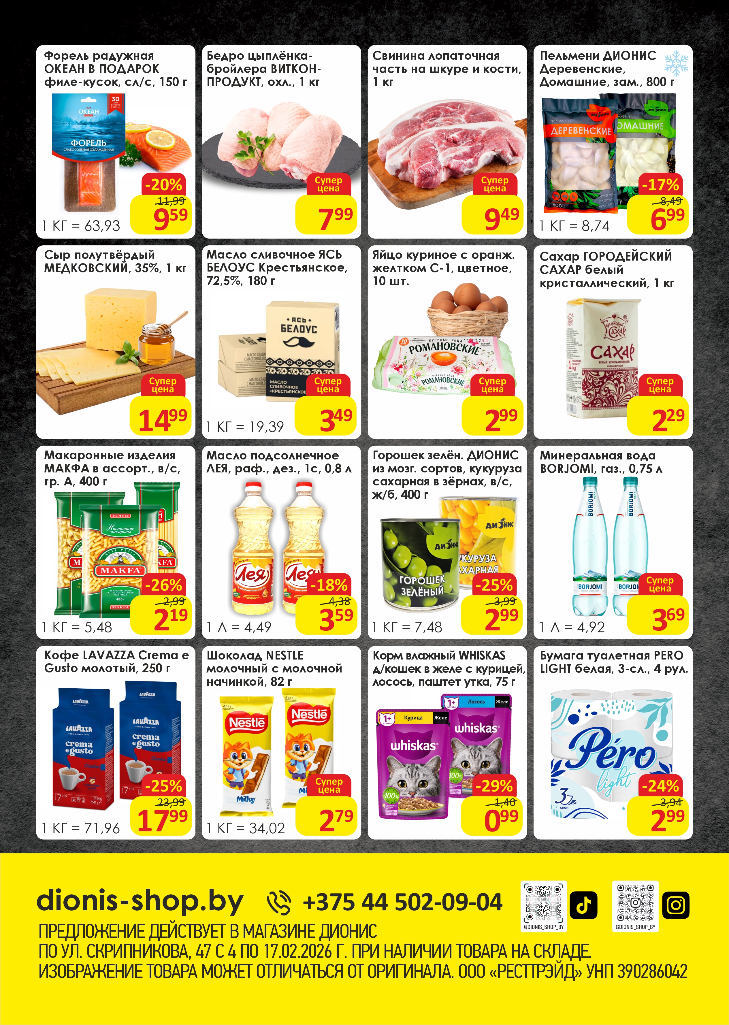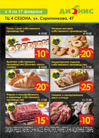 Специальные предложения для покупателей магазина Дионис по адресу г. Минск, ул. Скрипникова, 47 (ТЦ 4 Сезона)